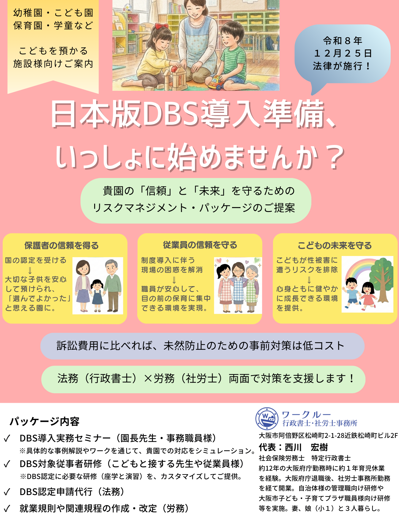 日本版DBS制度の開始(こども性暴力防止法が令和8年12月25日に施行)に向け、
