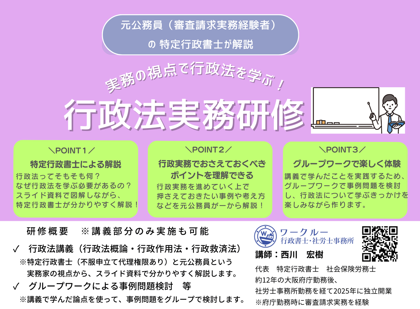 自治体の研修担当者様向けとして、「行政法実務研修」も取り扱っております。